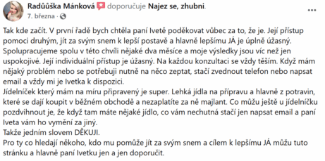 "Pro ty co hledají někoho, kdo mu pomůže k lepšímu já, tak mohu Ivetku jen doporučit"
