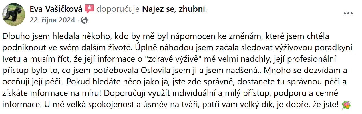 "Pro ty co hledají někoho, kdo mu pomůže k lepšímu já, tak mohu Ivetku jen doporučit"